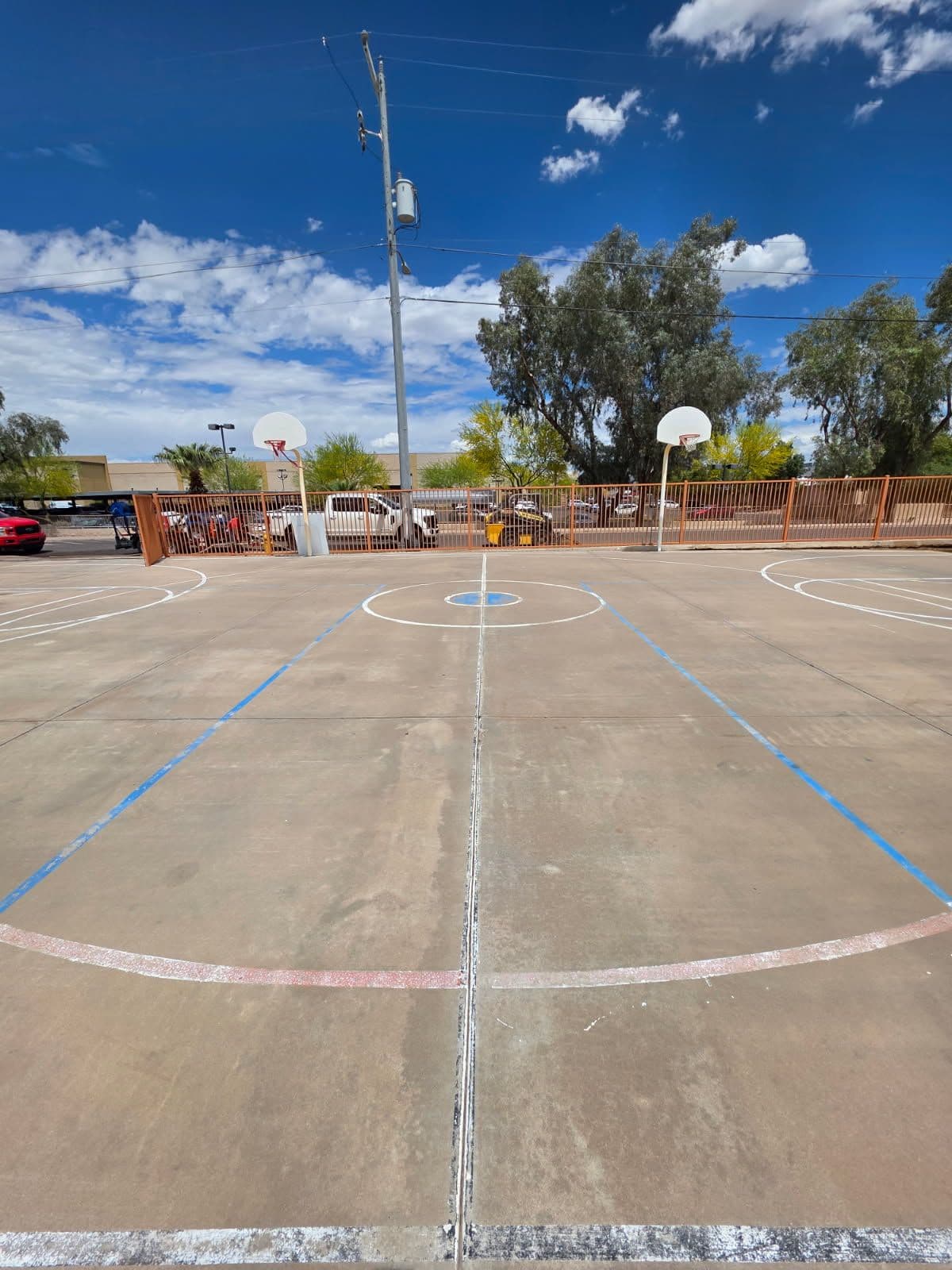 We had the opportunity to collaborate with our friends at Concord Construction to give a local Phoenix basketball court a much-needed cleaning and shine. The court had accumulated noticeable tire marks and general grime, a common issue when outdoor spaces see a lot of action and nearby vehicular traffic.